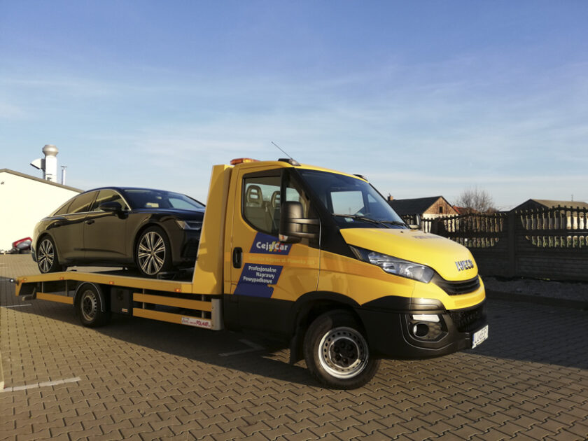- Zholujemy uszkodzony samochód z miejsca kolizji.